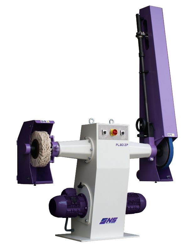 Ciężka solidna konstrukcja zapewnia znikome wibracje podczas pracy. Polerowanie i szlifowanie pasem szlifierskim z dwoma niezależnymi silnikami. Maszyna ma trzy prędkości w standardzie.