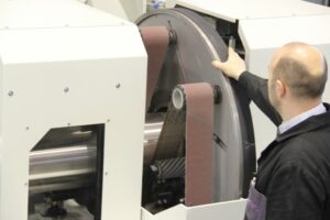 Maszyna posiada rolkę dociskową z automatycznym włączeniem/wyłączeniem. Pozwala to na osiągnięcie wyższej wydajności szlifowania. Możliwość szlifowania/wykańczania powierzchni rur, jak również usuwania niedoskonałości na powierzchni (dzięki rolce dociskowej na pasie szlifierskim).