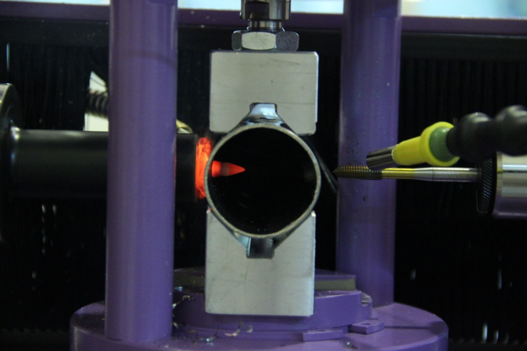 W tej maszynie posuw rury, jej obrót i zacisk odbywa się automatycznie.